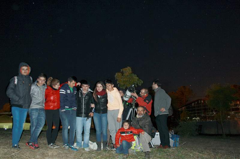 La mayoría de las observaciones las realizamos a simple vista, para adiestrar la visión y coger soltura. Complementándolas con el uso de prismáticos y catalejos disponibles. Luego fuimos viendo por turnos, a través del telescopio de Valentín, el planeta Júpiter y sus principales satélites casi casi al alcance de la mano.