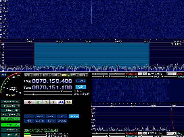 Era la primera prueba con el HDSDR, pero todo funcionó a la perfección y realizamos algunos ensayos muy interesantes. Estas son las capturas de recepción: