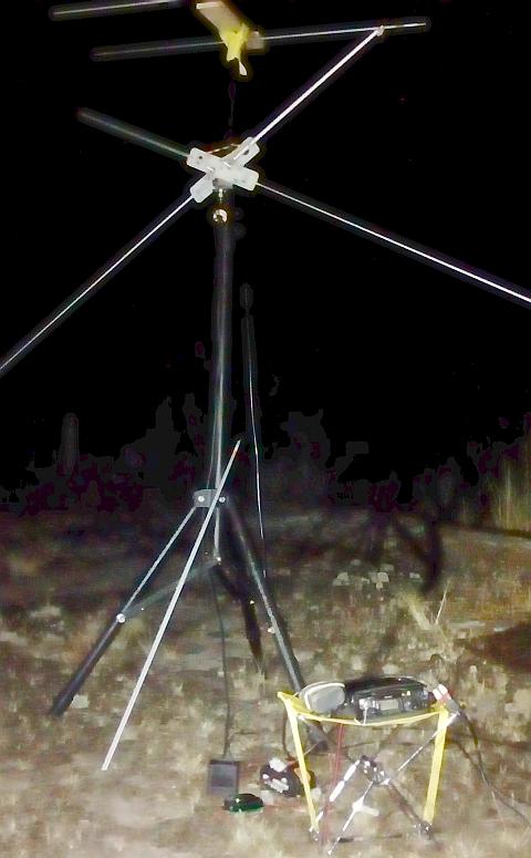 Ya empleamos la antena HZ-SkyWave en ocasiones anteriores, junto con el receptor el Icom 706-MKII, y nos consta su buen desempeño detectando numerosos ecos. La dispoción del radiotelescopio era la que se muestra en la siguiente figura: