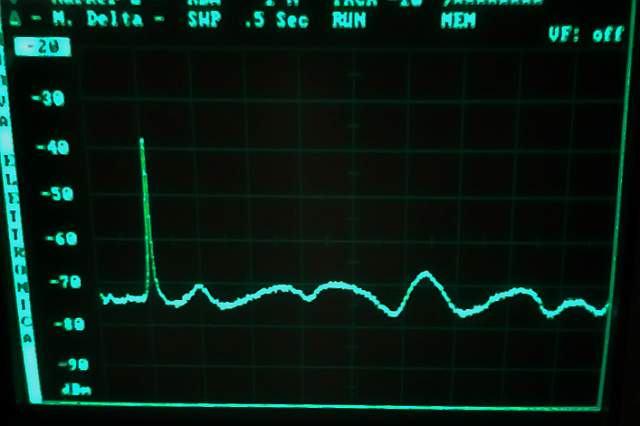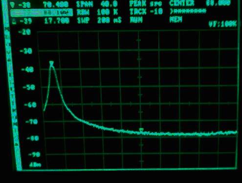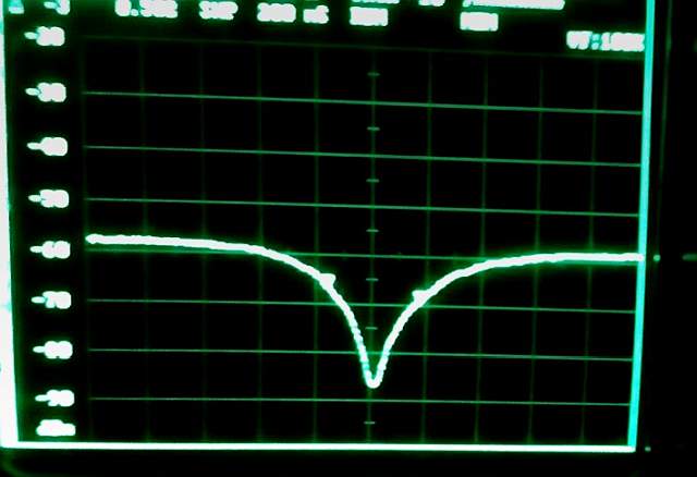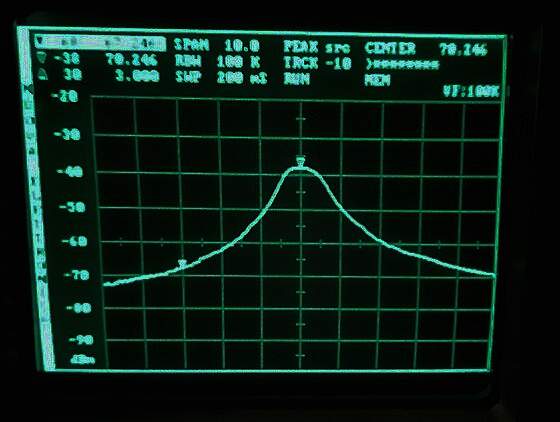 No está mal. Veamos ahora la banda de paso. Una curva limpia centrada en 70,246 MHz: