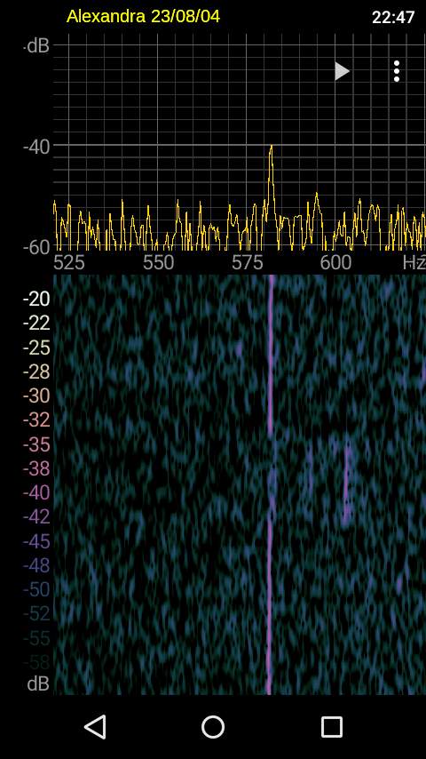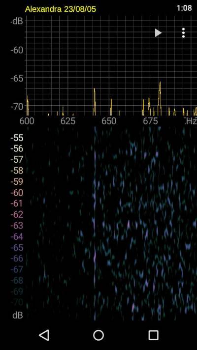 Intercalando el Filtrím la cosa cambia… Por una parte el nivel de señal ha descendido un poco (todos los filtros introducen cierta atenuación), pero si nos fijamos en el umbral de ruido, este ha descendido mas aún. Ahora la diferencia de nivel entre la señal de Alexandra y el umbral de ruido es de unos 24 dB. Hemos mejorado la S2N en unos 10 dB. Además, ahora ya no resultan prácticamente audibles las intermodulaciones en el altavoz. ¡Prueba superada señor Filtrím!.