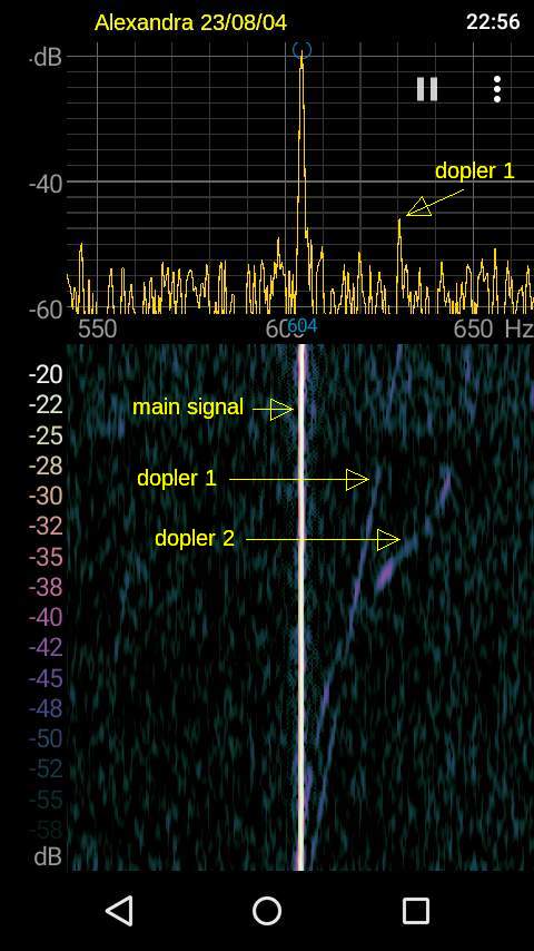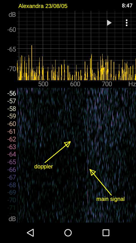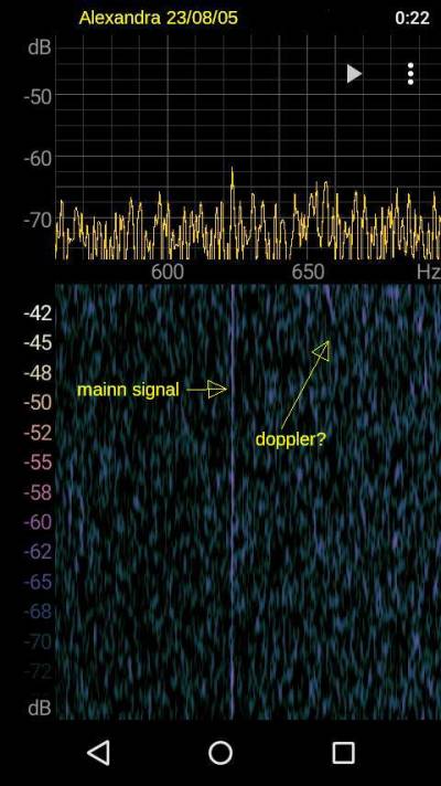 Por la mañana, la señal, aunque débil, resulta distinguible entre el ruido de fondo, incluso se percibe un doppler madrugador: