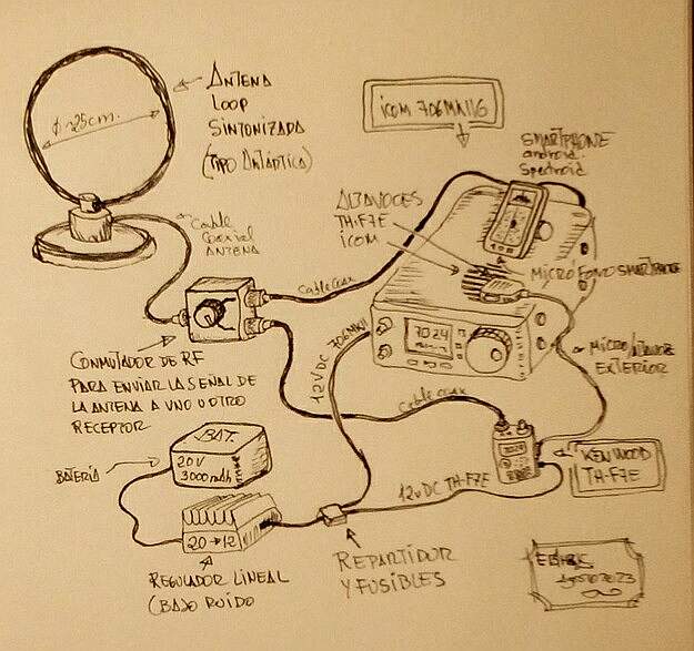 Con la antena loop y el conmutador de señal, vamos a comparar ahora la recepción de Alexandra entre los dos receptores: walkie Kenwood TH-F7E e Icom 706MKIIG.