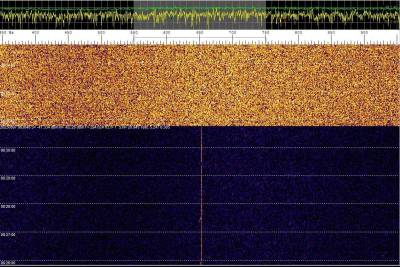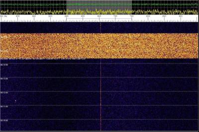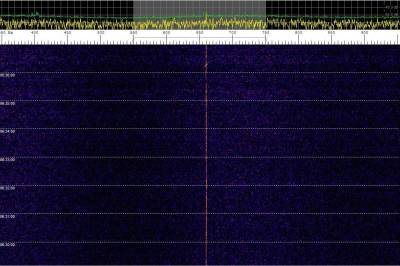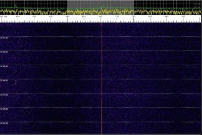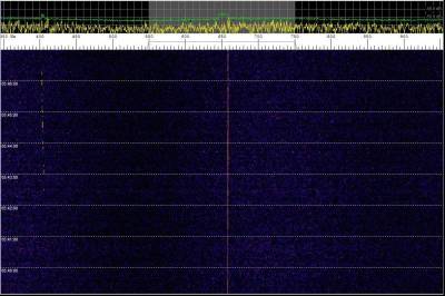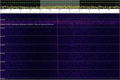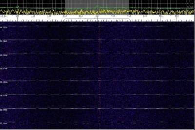 A la izquierda del waterfall se muestra la hora (local EA). Las lineas horizontales de puntos se graban cada minuto.