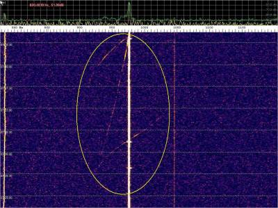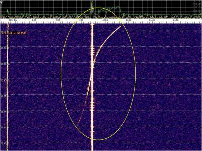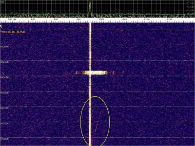 Burst misteriosos, trama ID, dópler de avión y… una señal intensa en la parte superior. Pero no se trata de nada extraño. Es la interferencia generada por conectar la estación de HF en las inmediaciones.