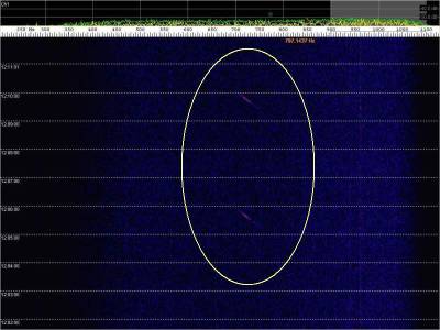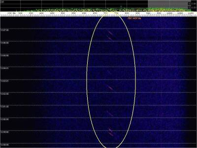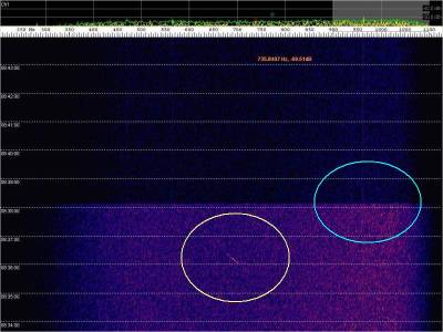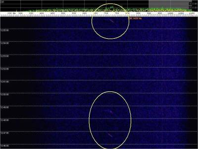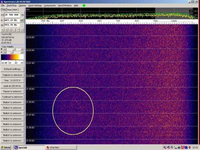 Aspectos a destacar: ecos de aviones muy débiles; total ausencia de recepción de la señal directa de Alexandra; ruido de fondo debido a la proximidad de una farola con lámpara de vapor de sodio; doppler de los aviones invertido .