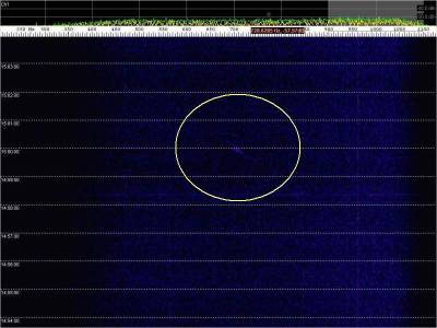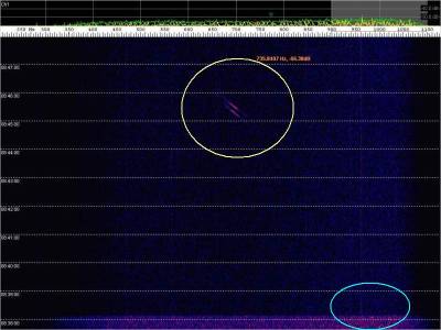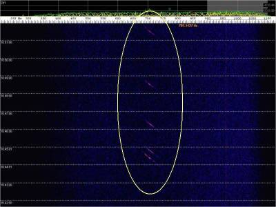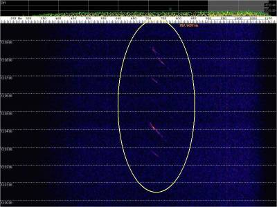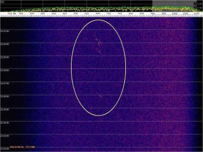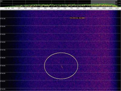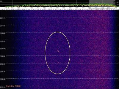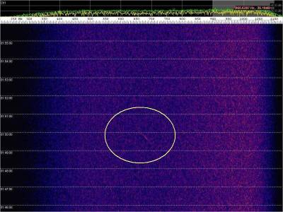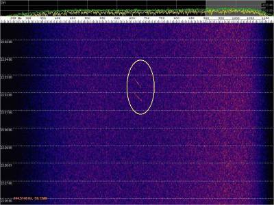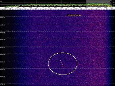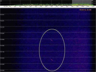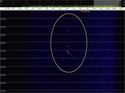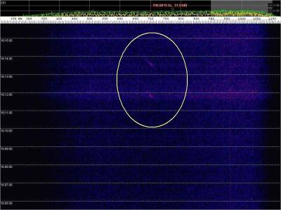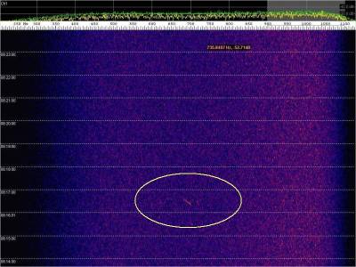 En la siguiente captura, en rojo, una posible detección. Aunque muy débil.