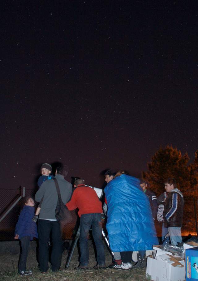 La mayoría de las observaciones las realizamos a simple vista, para adiestrar la visión y coger soltura. Complementándolas con el uso de prismáticos y catalejos disponibles. Luego fuimos viendo por turnos, a través del telescopio de Valentín, el planeta Júpiter y sus principales satélites casi casi al alcance de la mano.