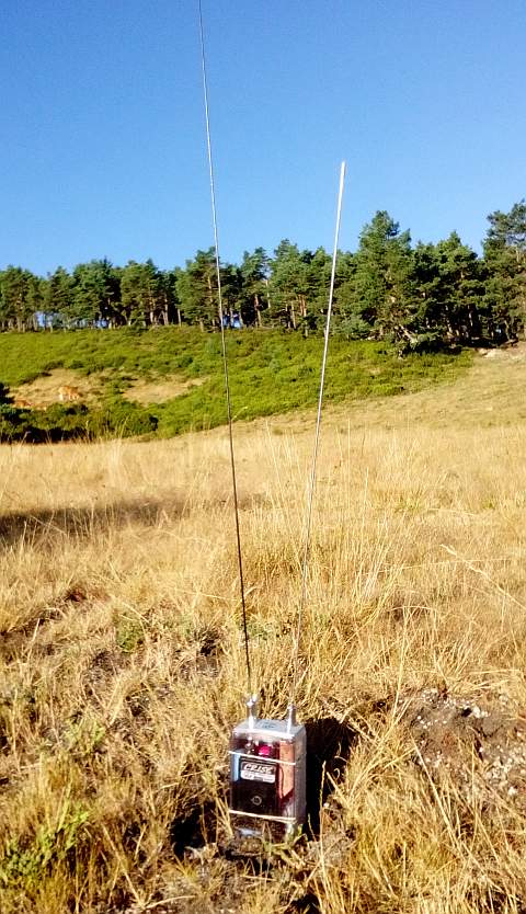 Para la fase beta del primer prototipo utilizamos un receptor Crise de VLF, construido por EA1HBX, al que equipamos con un radiotransmisor de señal en la banda de VHF, y una bateria de elevada capacidad.