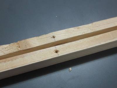Después, cortamos los listones e hicimos los agujeros para meter los tornillos, que quedarán como se puede ver en la imagen.