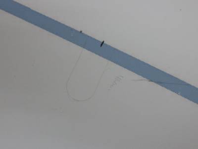 Aquí podeis ver en detalle las marcas para las escuadras en la parábola, además del fleje que usaremos para unir.