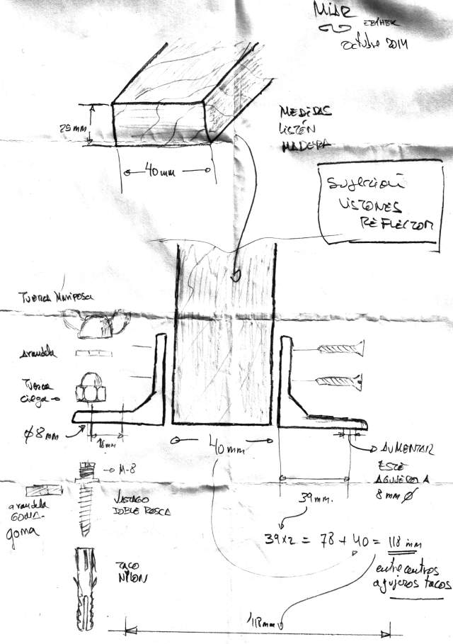 Esta es la solución adoptada por los alumnos del colegio para realizar la fijación de los largueros a la plataforma, para sujetar el reflector curvo. Todos los materiales disponibles en proveedores locales.