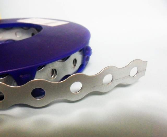 Como elemento de fijación para mantener el reflector curvo sobre los elementos de soporte emplearemos fleje metálico perforado, adecuado para tornillos de métrica 6 (M6).