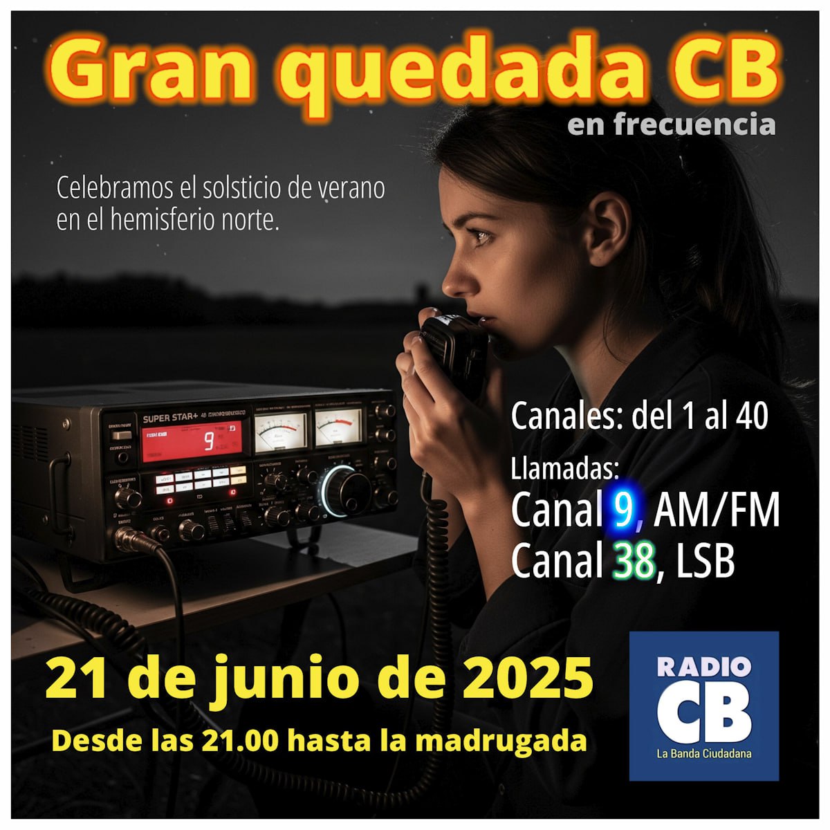 A partir de las 21.00 horas (Madrid), desde casa, desde el campo, desde el mar, desde las montañas, … llama a otros cebeístas en el canal 9, si antes no has encontrado actividad en ningún canal de los legalmente autorizados para la Banda Ciudadana. Usa también el canal 38, en modo LSB, para llamar a estaciones más distantes y no olvides cambiar de canal para seguir el QSO.