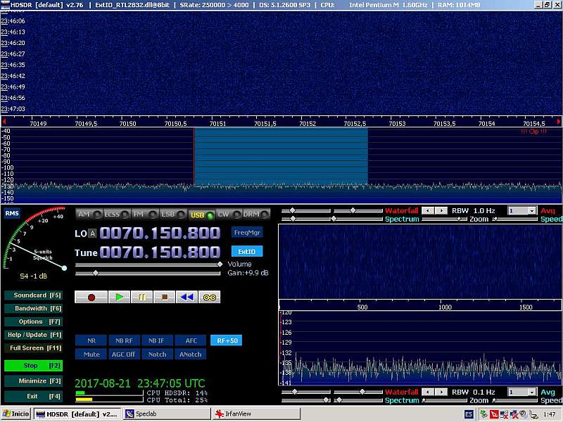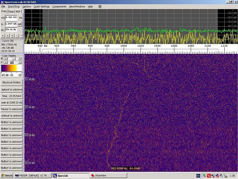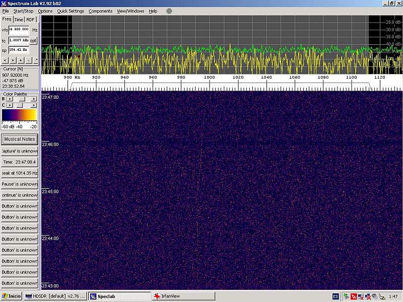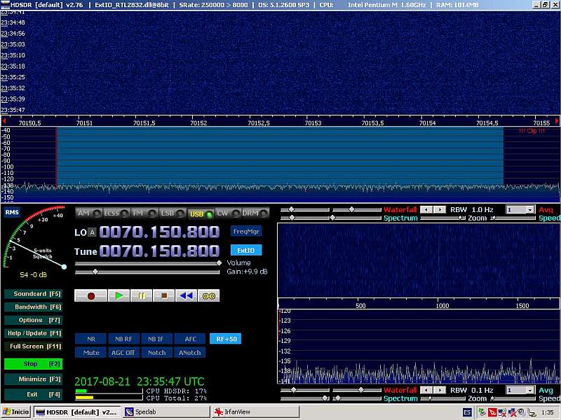 Al rato las trazas de señal se desvanecen por completo sobre el espectro del HDSDR… ¿será todavía visible en el SpectrumLab?…
