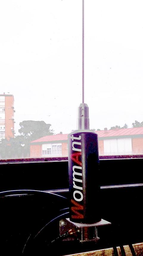 La antena no puede ser mas sencilla, una pequeña vertical fijada sobre el marco metálico de la ventana. Lo ideal sería que estuviese orientada hacia el Este, pero no es el caso. La ventana está orientada justo en dirección opuesta, hacia el Oeste.