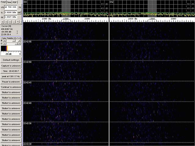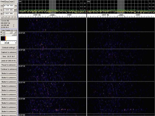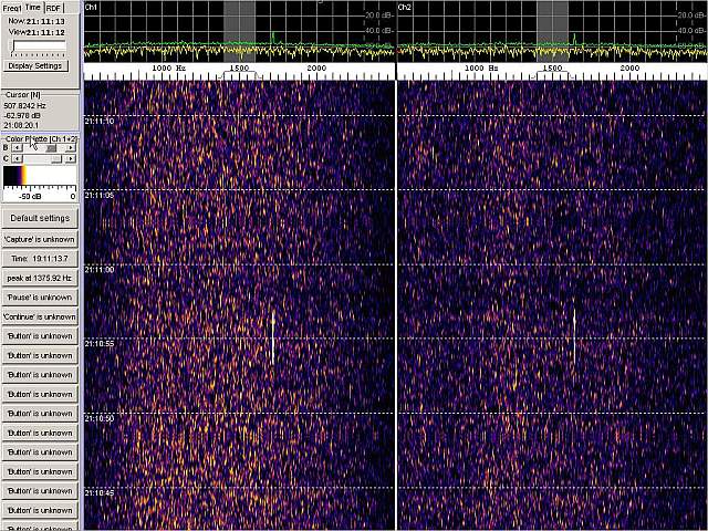 En la captura superior, vemos señales muy débiles, como pequeños copos de nieve, que aparecen en ambos canales, con diferencias de intensidad. Pero hay tmabien “copos” que solo parecen en un canal.. ¿Ruido interno del receptor?..