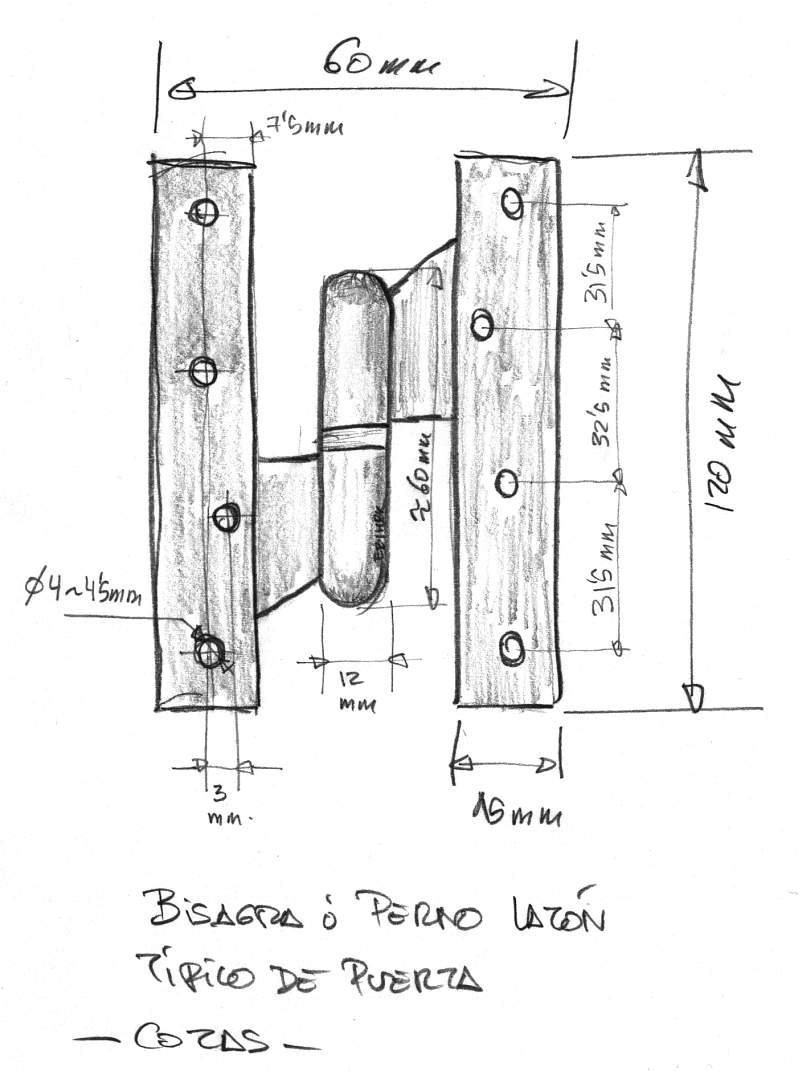 Como bisagras usaremos las típicas que se emplean para las puertas de casa, con la estructura de latón y un perno central en acero: