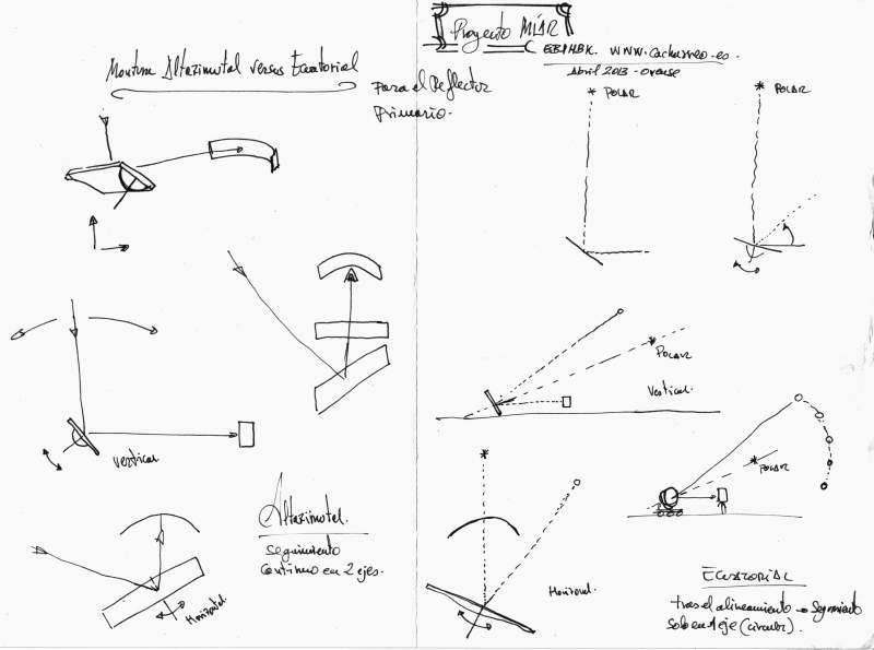 Como se indicaba mas arriba, el sistema de reflectores puede dejarse fijo, ajustados en una posición determinada, dejando que sea el movimiento de giro terrestre el que realice el “barrido” de observación o puede dotarse de seguimiento automático en un o dos ejes.