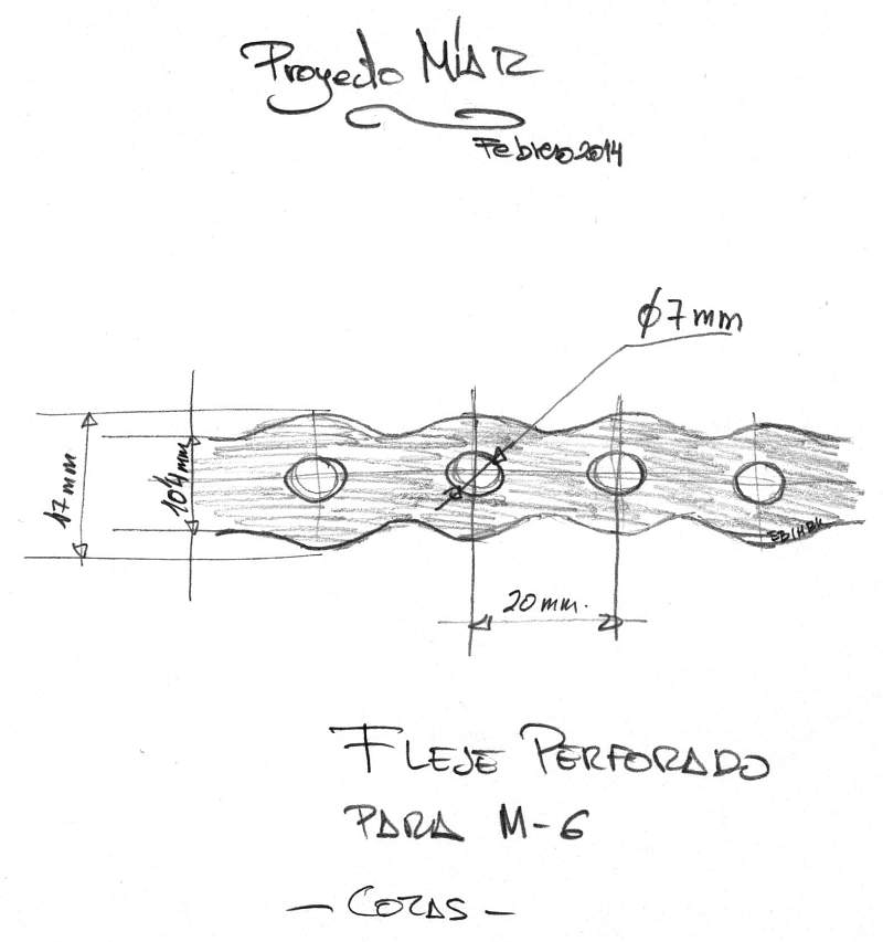 Como elemento de fijación para mantener el reflector curvo sobre los elementos de soporte emplearemos fleje metálico perforado, adecuado para tornillos de métrica 6 (M6).