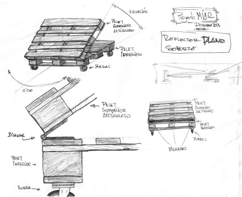 Pinchando aquí podrás ver algunos bocetos realizados por los alumnos con diversas ideas para proporcionar movimiento de elevación al reflector plano.