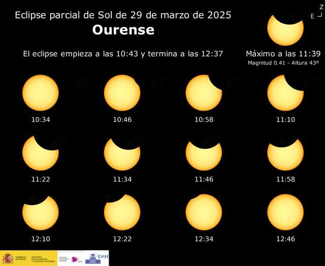 Desde la capital de nuestra provincia, Orense, la secuencia de ocultación será la siguiente: